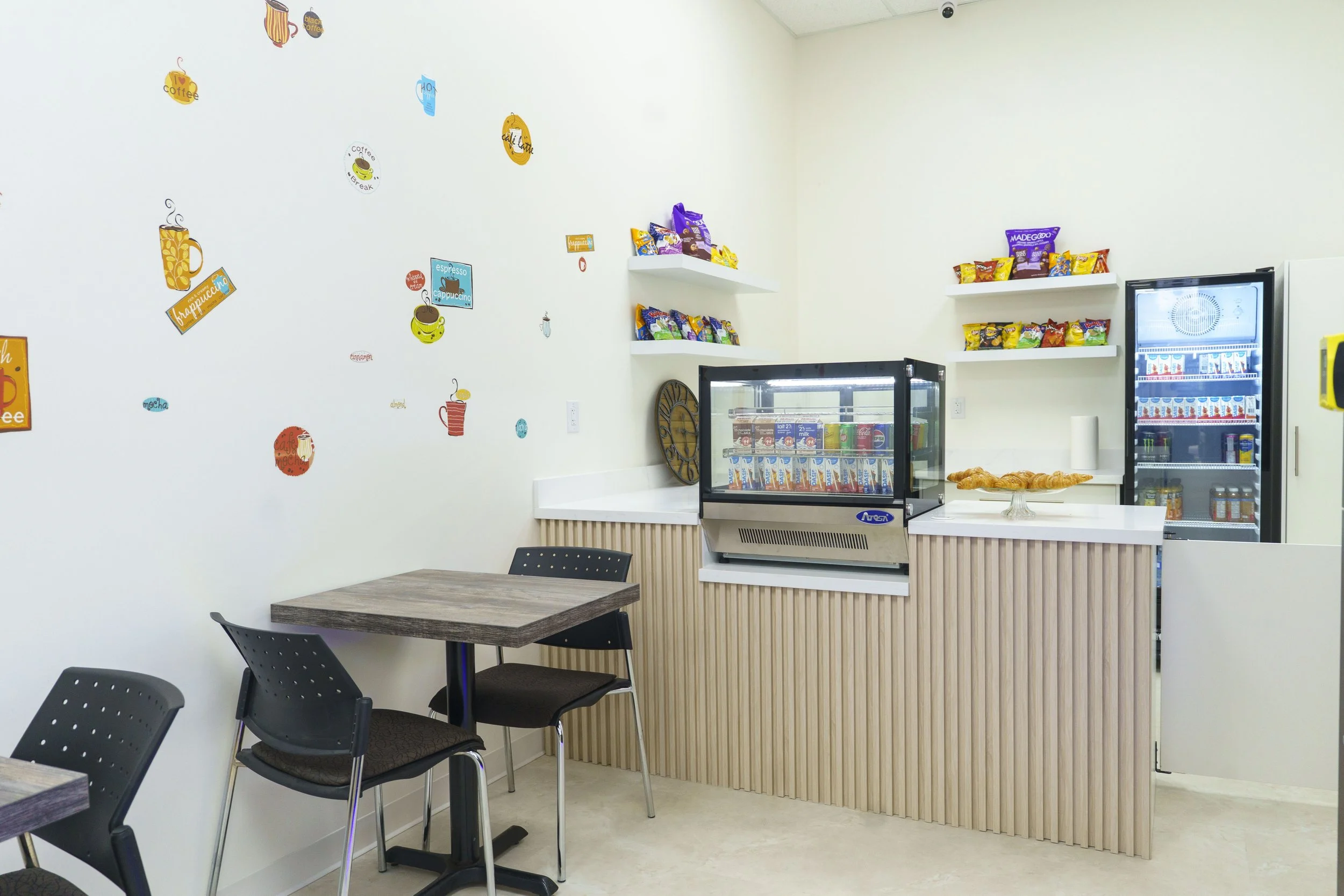 A cozy space where everyone can catch their breath, chat with others, and enjoy a cup of coffee.